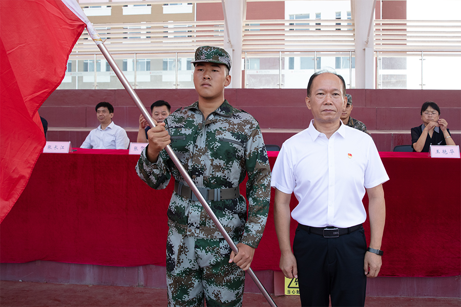 最后,党委副书记李兵向2023级学生军训营授予营旗。