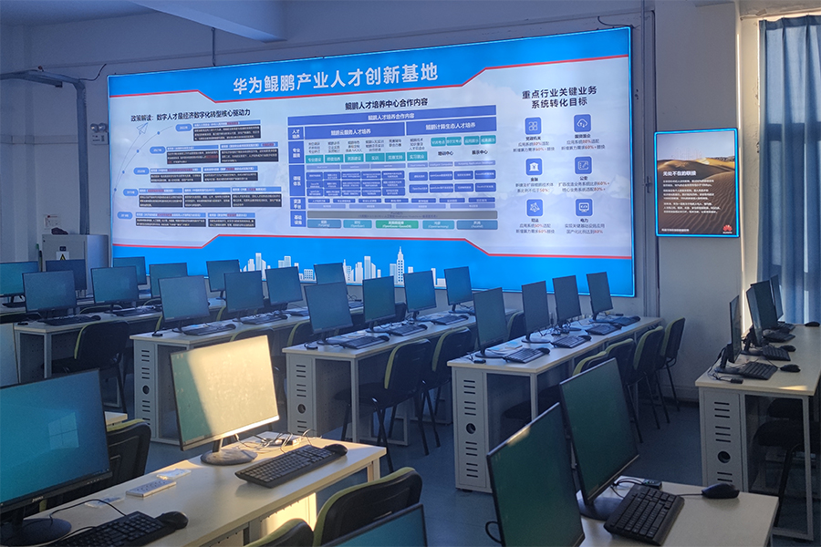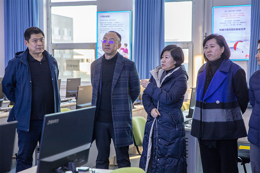 在华为鲲鹏产业学院,考察团一行详细参观了产业学院实训室,听取了产业学院的建设情况汇报。华为鲲鹏产业学院围绕盘锦市能源装备智能制造、电子信息等产业重点发展方向,在人才培养、协同创新、产业升级和成果转化方面开展多方面合作。双方通过共商培养方案、共组教学团队、共建教学资源,共同考核评价,持续推进教学改革,提升信息技术人才培养质量,并取得了实质性进展。