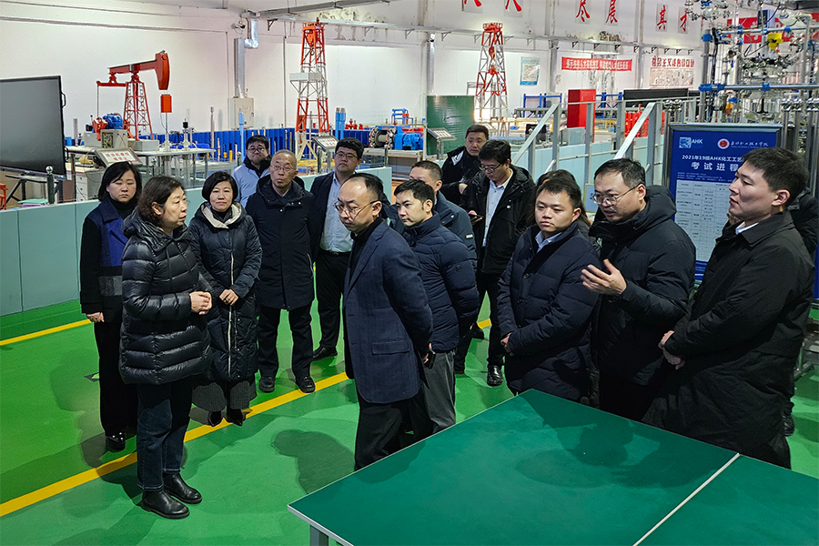在化工实训中心,考察团一行详细参观了德国化工工艺员培训与考试设备、化工总控工装置、燃料油生产设备等,听取了化学工程学院在辽宁省高水平特色专业群、辽宁省兴辽卓越专业群建设、辽宁省数字化升级改造示范专业等建设情况和取得的成绩。化学工程学院依托化工实训中心,立足盘锦世界级石化及精细化工产业基地,在做好高职学生培养的同时,长年为产业园区和企业员工提供化工安全、化工单元、化工生产技术等培训,取得了良好的社会效益。