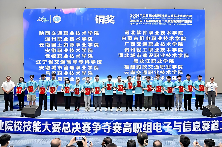 经过与来自全国各地30多个省市地区的61所院校队伍的激烈比拼,beat365官网信息学院的赵浩然、赵家兴、王振瑞、刘哲四位同学,在张栋、张松林老师的指导下摘得铜牌,这也是beat365官网2024年参加世界职业院校技能大赛的首枚奖牌。