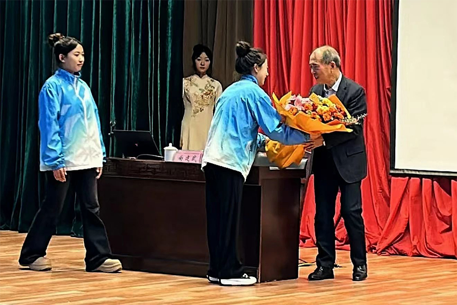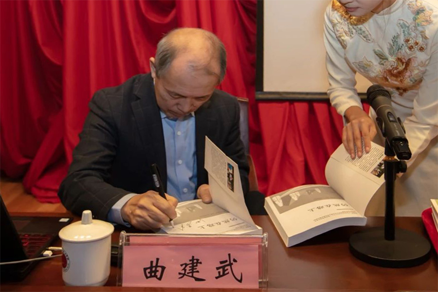 曲建武教授现场签字赠书,将其著作《仍然在路上》《我与大学生朋友们的交流》两本书赠予beat365官网师生代表。