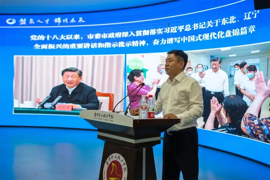 上午10:00举办市情宣讲会,学校党委副书记、校长宋锦出席宣讲会并致辞,盘锦市人社局党组成员、副局长方佰辉出席并做了主题宣讲,学校副校长李辉参加了宣讲会,宣讲会由学校党委副书记李兵主持。