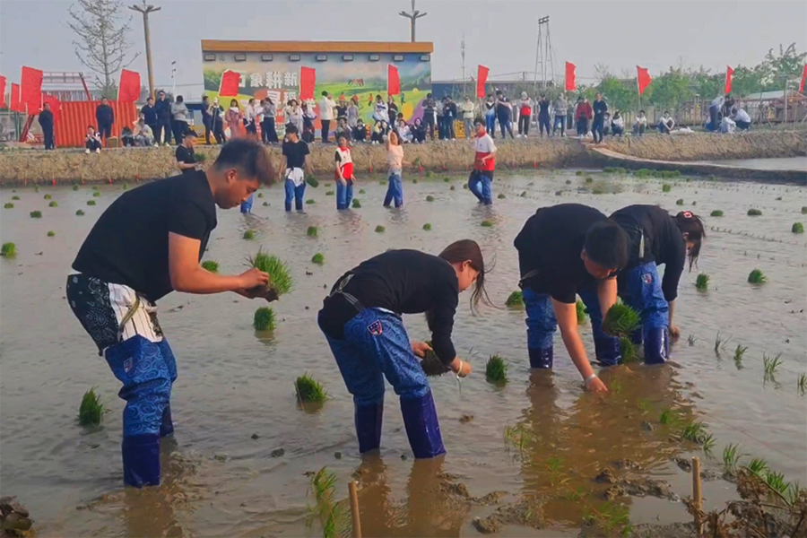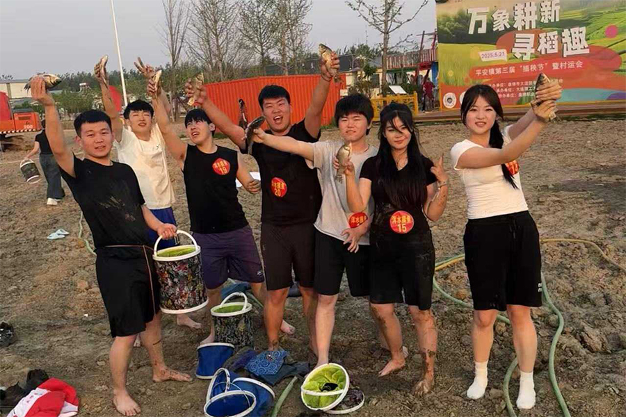 活动当天,朝鲜族传统农乐舞表演率先登场,展现出浓郁的民族风情。beat365英国官方网站经济管理学院90余名学生积极参与插秧、浑水摸鱼等趣味农事体验。在团队协作中,学生们切身体验到农业生产的协作逻辑。中场休息时,黑胶唱片乐队带来的《日不落》《千千阙歌》等歌曲,以美妙的旋律为此次校地合作增添文化亮色。