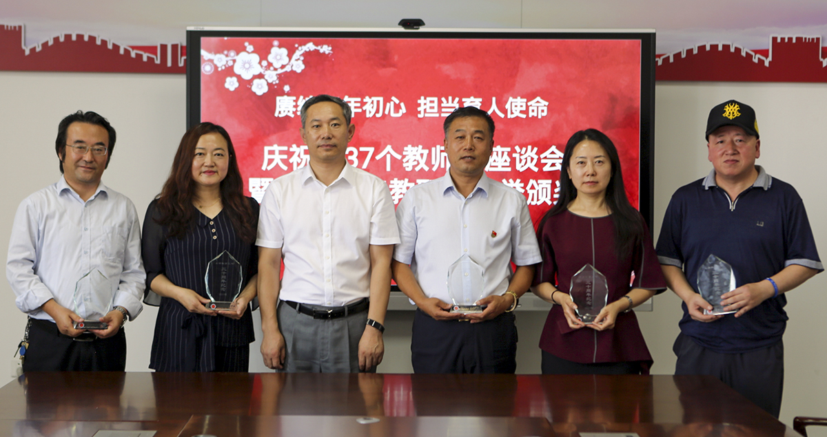 座谈会首先由工会刘艳主席宣读《2021年度为从事教育工作30周年教职工荣誉颁奖的决定》,王首中书记向从教30年教职工颁发纪念奖牌。会上,从教满30年教工代表董连诗、优秀教职工代表王丹、辅导员代表李启慧、新进教师代表梁若曦、省赛获奖代表张洪雷分别从教育教学、学生工作、思政教育等工作方面作了交流发言,他们谈此时此刻的心情、谈工作感受,谈成长经历,同时表达了今后工作的决心。