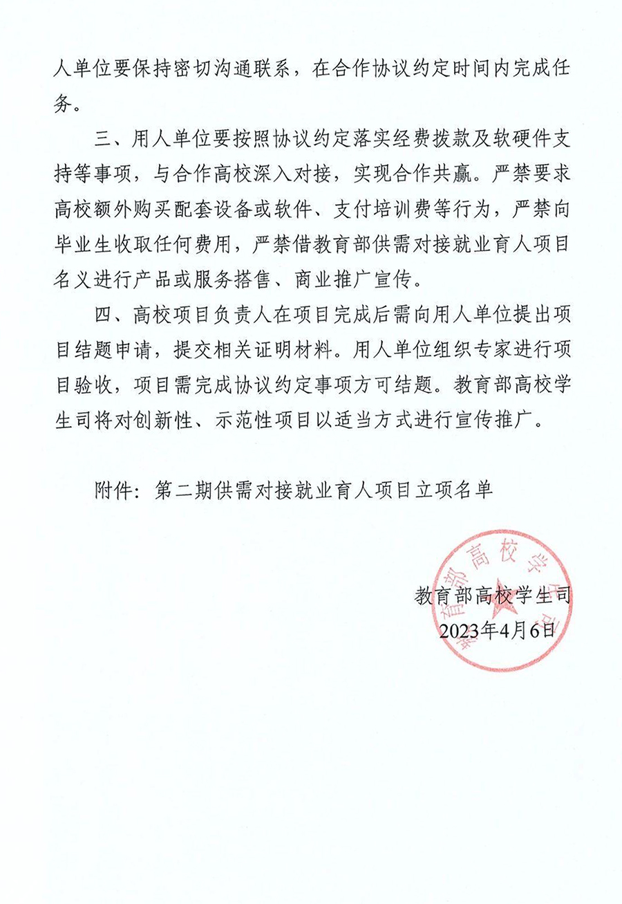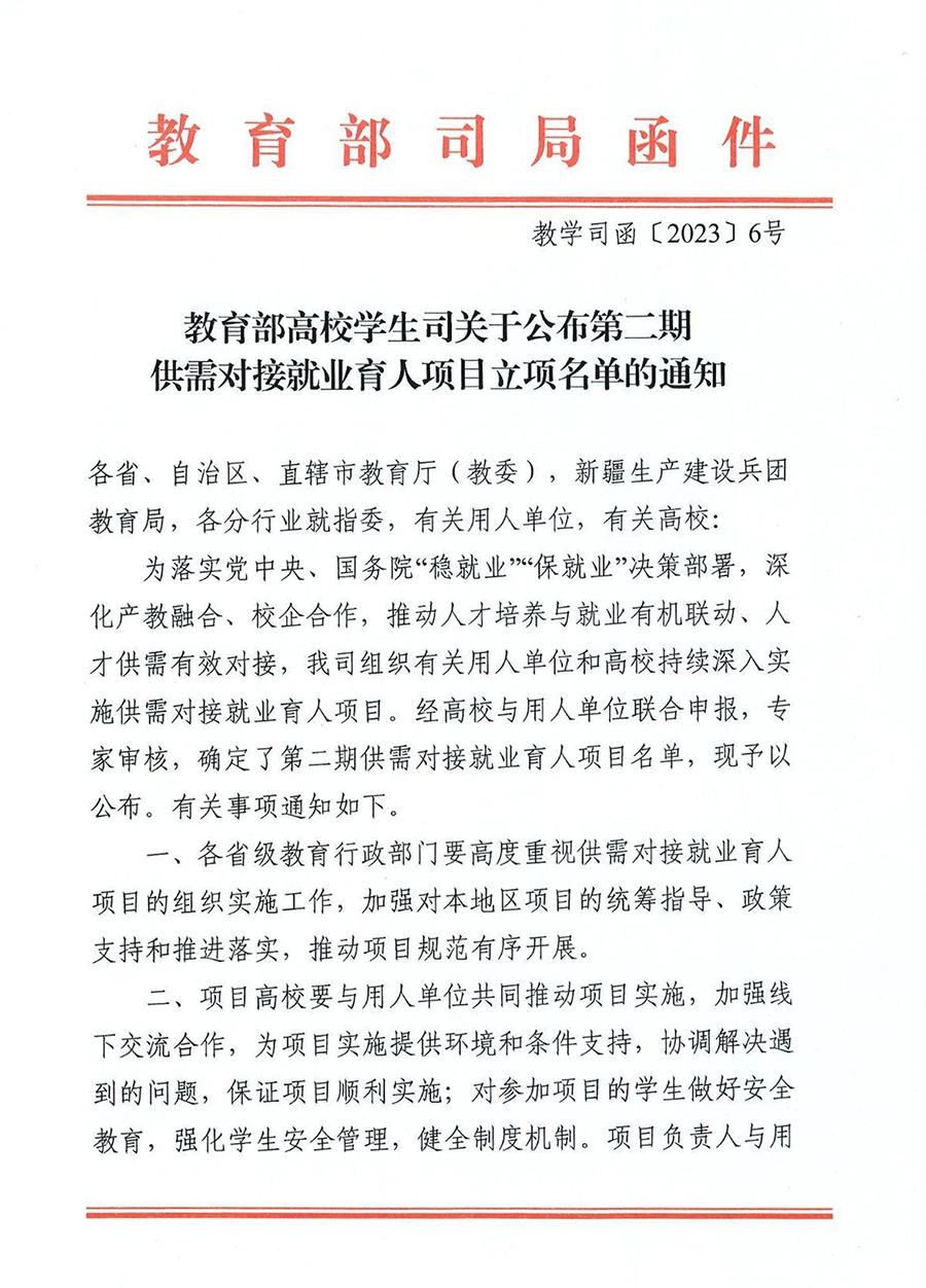 近日,教育部高校学生司印发《关于公布第二期供需对接就业育人项目立项名单的通知》(教学司函〔2023〕6号),beat365官网建筑工程学院联合企业申报的定向人才培养培训项目喜获立项。