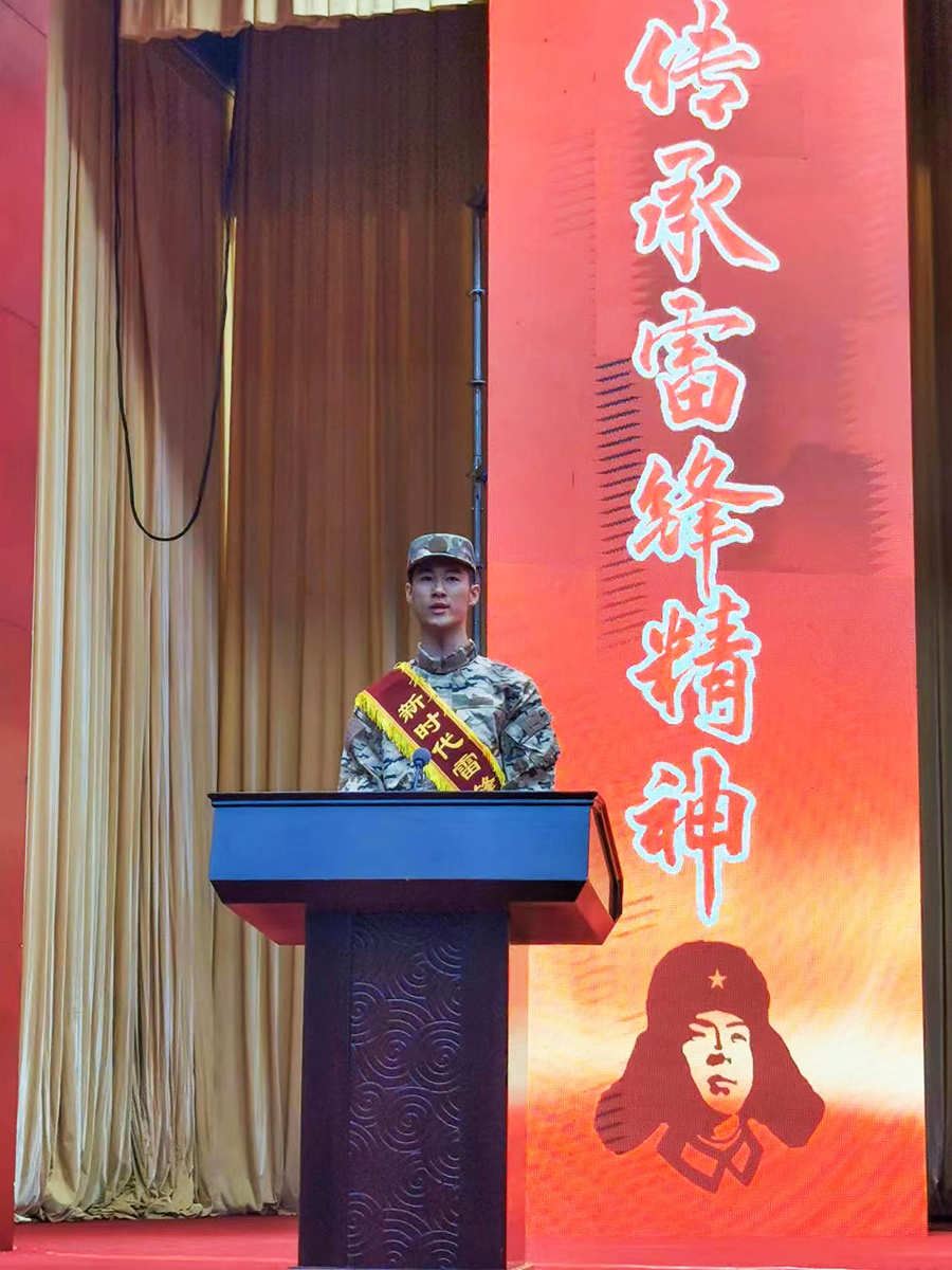 石油工程学院杨金盛同学作为入伍学生代表发言。他在发言中深切表达了对从军的向往之情和对祖国的报效之志,同时也表达了对学校和老师的感激之情。他表示会在部队里苦练军事技能,勤奋学习,使自己早日成为“有灵魂、有本事、有血性、有品德”的新一代革命军人,把盘锦职院德艺周厚、知行合一的校训精神带到部队去,努力为学校增光添彩。
