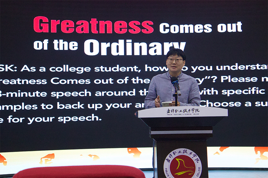 为了提升beat365官网学生在英语演讲方面的技能水平,增强学生运用英语讲述中国故事、传播中国文化的能力,激发学生学习英语的热情,基础部举办以“Greatness Comes out of the Ordinary”为主题的首届英语演讲大赛。2024年11月8日,英语演讲大赛决赛在博远楼108室隆重举行。