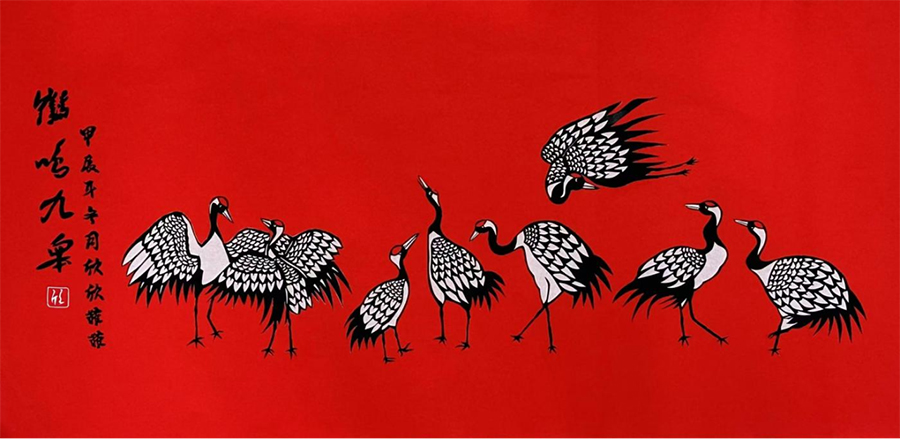 剪纸画一等奖 《鹤鸣九嗥》 作者:刘欣欣、刘菲菲 指导教师:张杰