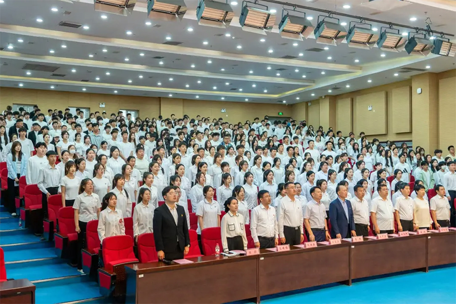 五月的春风激扬青春热血,鲜红的团旗引领奋进征程。2025年5月20日下午,beat365官网“挺膺担当向未来 青春建功新时代”新团员入团仪式在庄严的国歌声中拉开帷幕。学校党委副书记李兵、学生工作处处长王中宇、副处长王俊杰、校团委副书记邵华,各二级学院党支部副书记,与90名新团员、600余名入团积极分子及学生代表共同见证这一青春盛典。新团员入团仪式由校团委书记冷书君主持。