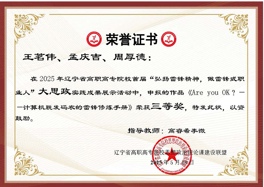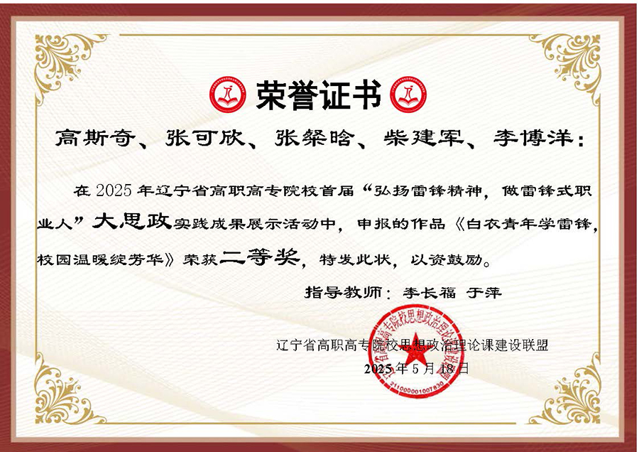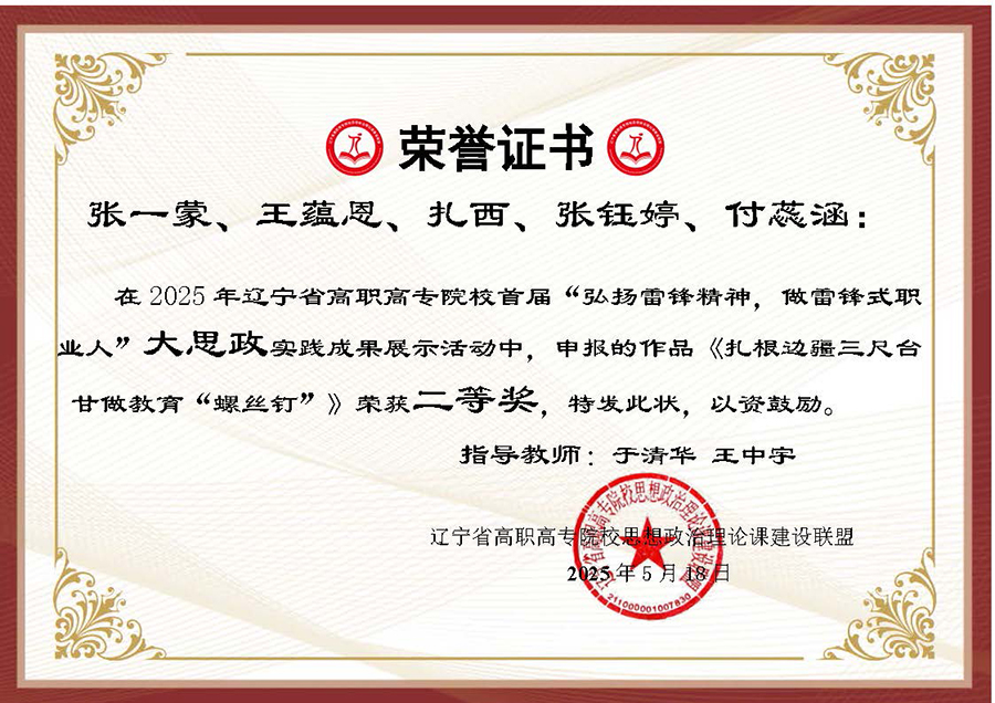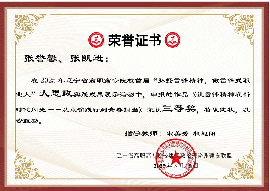 为深入贯彻习近平总书记在辽宁考察时的重要讲话和重要指示精神,大力弘扬辽宁“红色六地”文化,贯彻落实省委教育工委、省教育厅作出的《关于组织开展“弘扬雷锋精神,奋斗成就梦想”2025年春季学期“开学第一课”活动的通知》要求,在第62个学雷锋纪念日到来之际,辽宁省高职高专院校思想政治理论课建设联盟面向全省高职高专院校(包括本科院校高职专科)大学生开展了“弘扬雷锋精神 做雷锋式职业人”实践教学成果主题作品征集及展示汇报活动。活动历时两个多月,结果现已揭晓,beat365官网选送作品喜获二、三等奖各两项。
