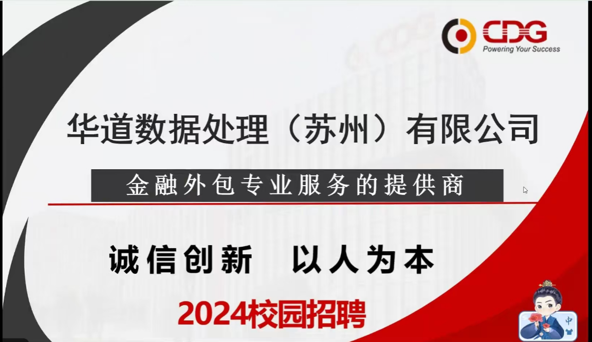 为了更好地帮助学生了解企业并为其就业提供机会,米兰milan官方网站于11月12日举办了华道数据处理有限公司线上专场宣讲会。