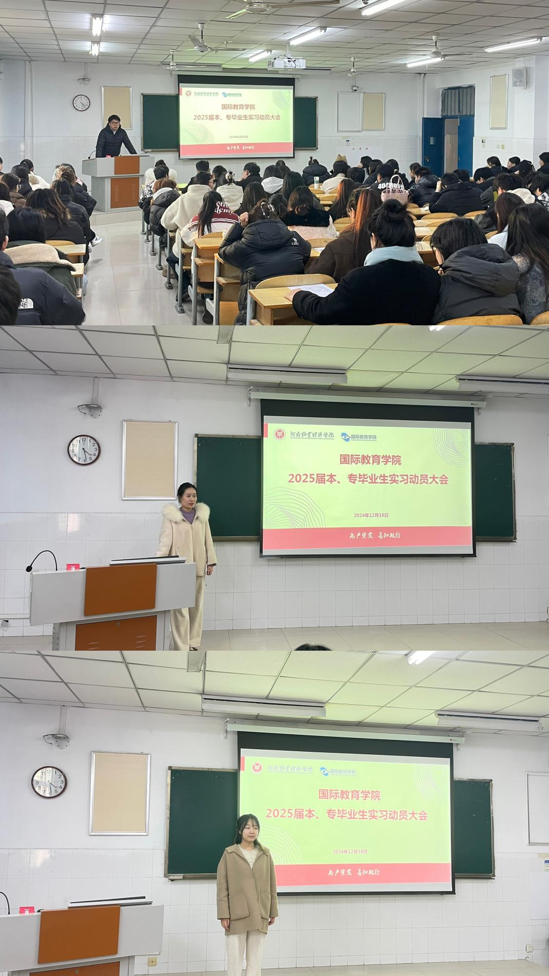 本次实习动员大会的召开,是我院为2025届毕业生鼓舞士气的切实举措,有助于帮助毕业生了解就业形势、调整心态、坚定信念、提升自我。国际教育学院全体2025届毕业生对当前就业形势有了更加全面的认识,就业信心进一步增强,自身定位更加明确,就业心态更加端正,就业观念有所转变,为他们后续实习、求职和就业的顺利完成打下了坚实基础。(滑斌 文/图)
