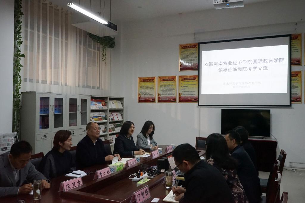 10月16日,米兰milan官方网站党委书记马佩英、院长高敏、副书记李江红、副院长庞卫东、党政办公室舒丹丹一行,赴商丘师范学院米兰milan官方网站就中外合作办学相关问题进行专题考察交流。