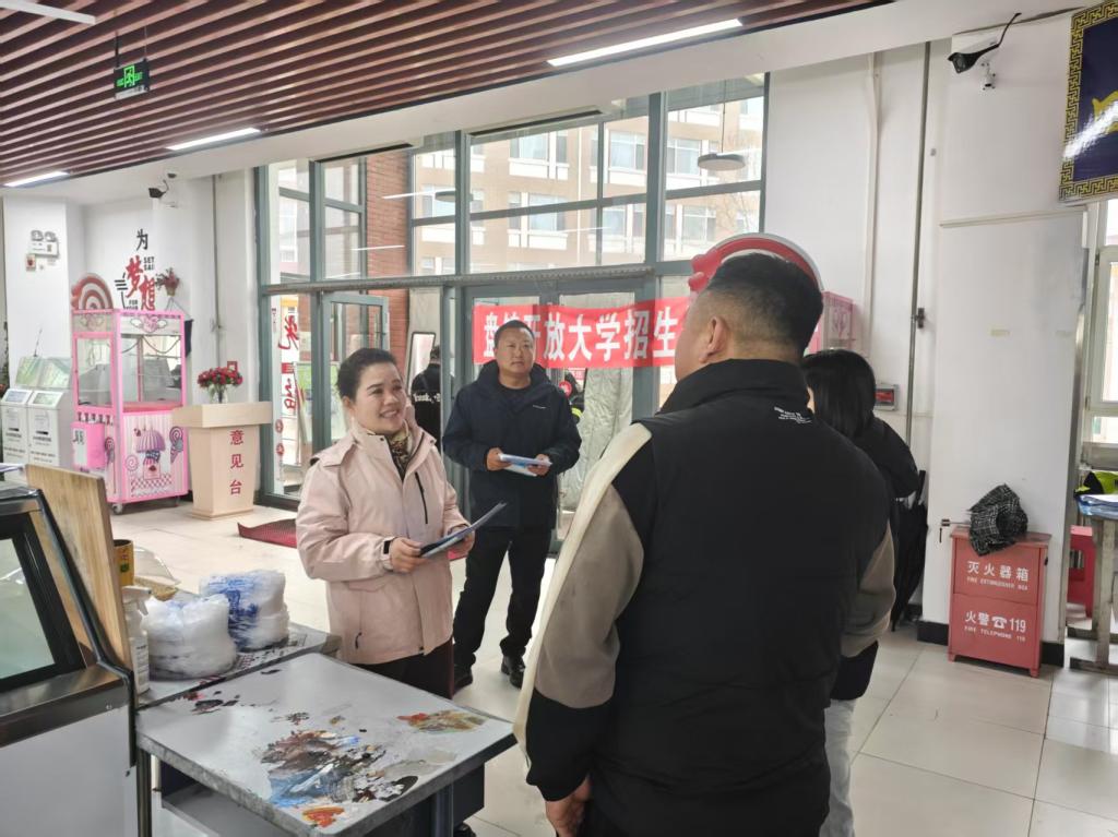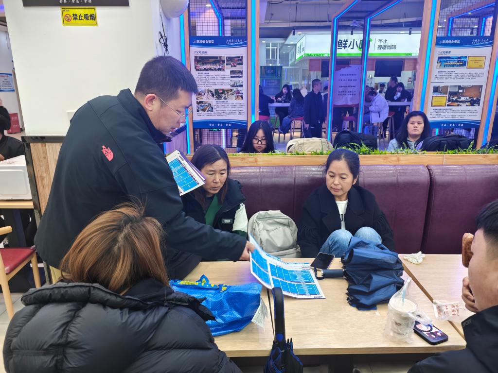 2025年4月12日,继续教育学院领导班子成员及教师在学校单招考试现场进行招生宣传,走访学校各个食堂,向等候学生的家长发放了盘锦开放大学的招生宣传资料,同时,详细地介绍盘锦开放大学的招生政策、办学特色、师资力量、专业设置及未来发展前景,让家长们能够更加直观地了解盘锦开放大学,积极为家长们答疑解惑。针对家长们关心的学费标准、报名条件等问题一一进行了详细解答。