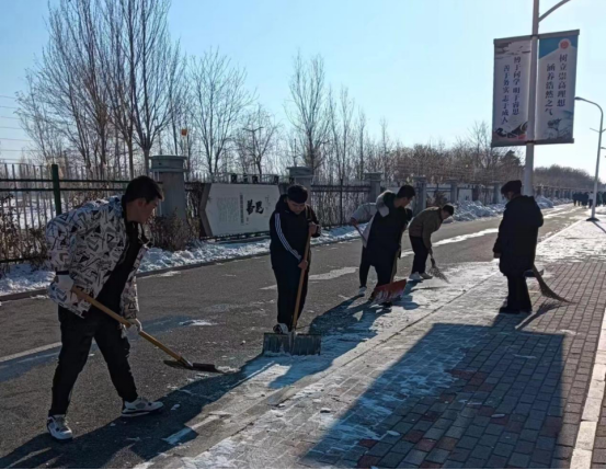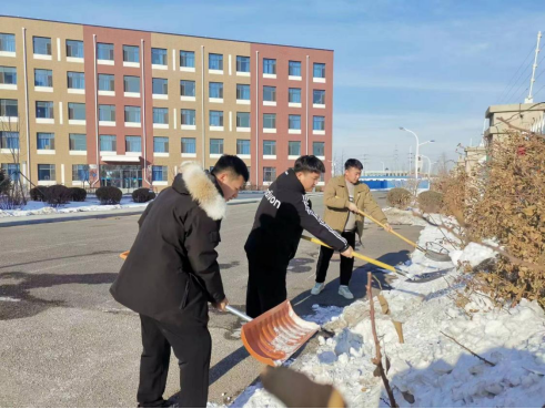 三名同学及其他学院同学们带着扫把、铁锹、除雪铲等各种工具,自发地组织起来,开始清理校园内的积雪。他们来到背阴的校园道路上,先扫去路面上的积雪,然后用除雪铲铲掉硬结的雪块,整个过程中,同学们分工明确,配合默契。他们不怕寒冷,不怕辛苦,轮番接力,工作了近1个小时。在他们的努力下,校园内的部分道路和学生公寓H座、I座等区域被清理干净,让师生们能够安全、顺利地出行。他们的行动感染了校园内的每一位同学和老师,也给校园带来了一份温暖和感动。