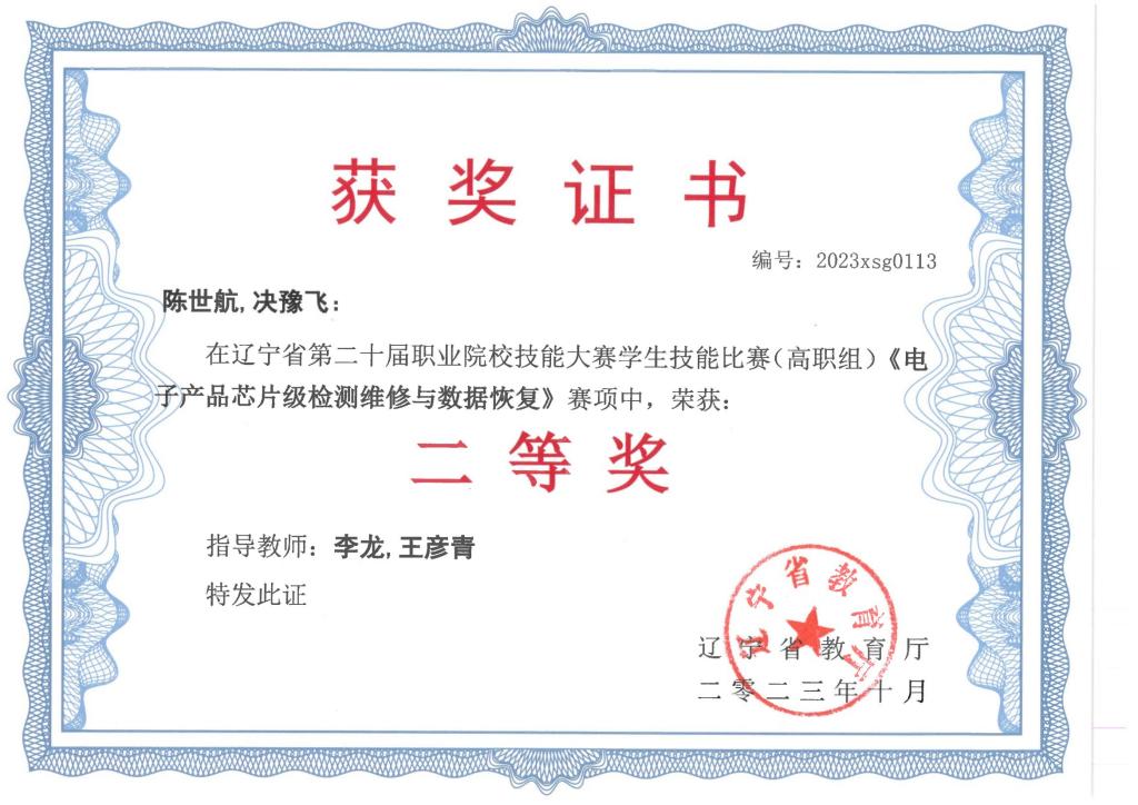 电子产品芯片级检测维修与数据恢复 省赛 二等奖