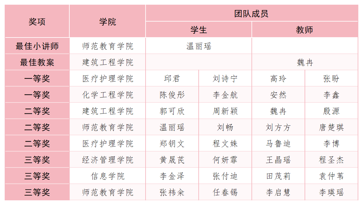 大赛评选出团体一等奖2项;二等奖3项;三等奖3项及“最佳小讲师”、“最佳教案”奖项。学校副校长勾殿红为本次大赛最佳小讲师颁奖。