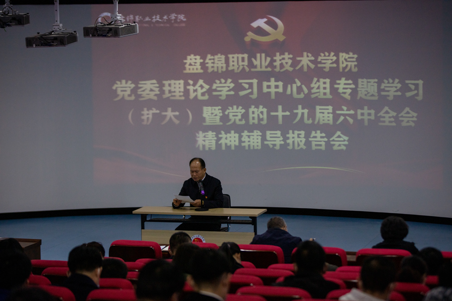 11月26日上午,学校在博远楼103会议室召开党委理论学习中心组专题学习(扩大)暨党的十九届六中全会精神辅导报告会。思政教研部李微老师在会上进行专题辅导。报告会由学校党委副书记...